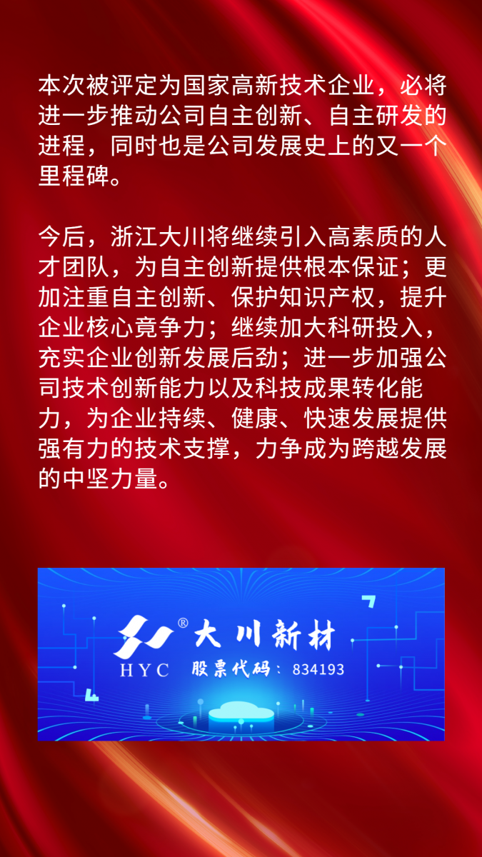浙江大川新材料股份有限公司 辦公地址:浙江杭州天目山路224號(hào)中融城市花園 投訴熱線(xiàn):0571-85028946 技術(shù)服務(wù)熱線(xiàn):0571-85028548 郵箱:yinhuchem@yinhuchem.com
